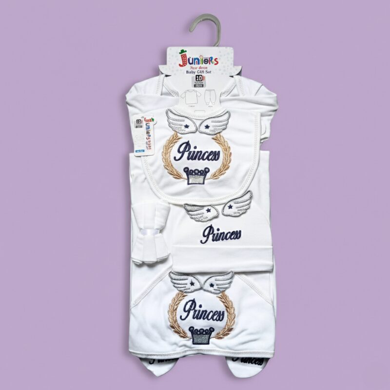 Give your little princess a royal beginning with our luxurious 10-piece baby starter set, crafted from premium interlock cotton.