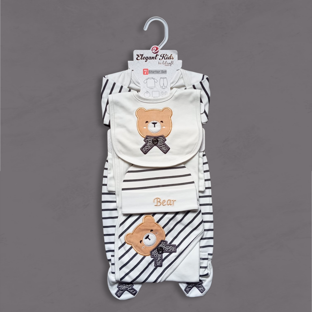 Whether for your own little one or as a thoughtful gift, this 7 pcs bear embroidered starter set is a must-have for newborn essentials.